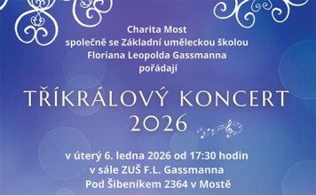 Koncert pořádá ZUŠ Gassmanna ve spolupráci s Charitou Most 6. ledna od 17.30 hodin. Součástí bude i tříkrálová charitativní sbírka.