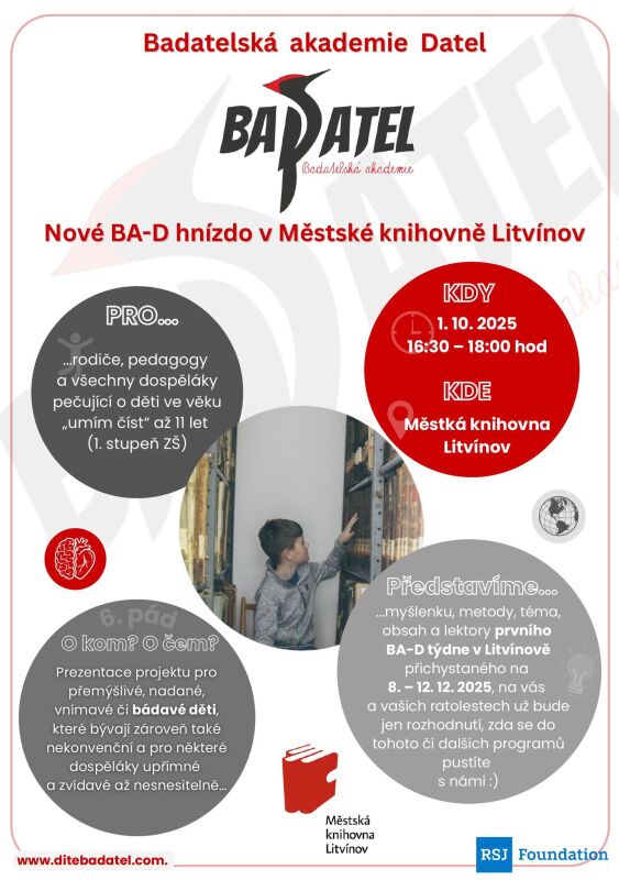 Tato novinka vzniká ve spolupráci s Badatelskou akademií Datel z Litoměřic a jde o ojedinělý projekt v rámci celé České republiky. Akce je otevřená všem.