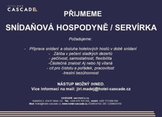 Hotel CASCADE přijme „snídaňovou hospodyni/servírku“ a číšníka/servírku