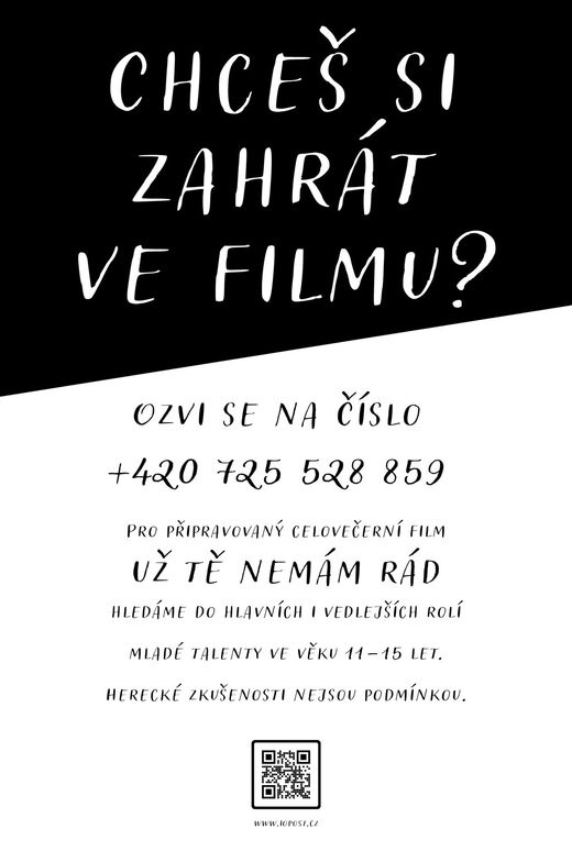 Do připravovaného celovečerního filmu s názvem Už tě nemám rád hledá jeho režisér Zdeněk Jiráský do hlavních rolí dívku a chlapce ve věku zhruba od 11 do 15 let. Poptávka bude také po dalších vedlejších dětských rolích.