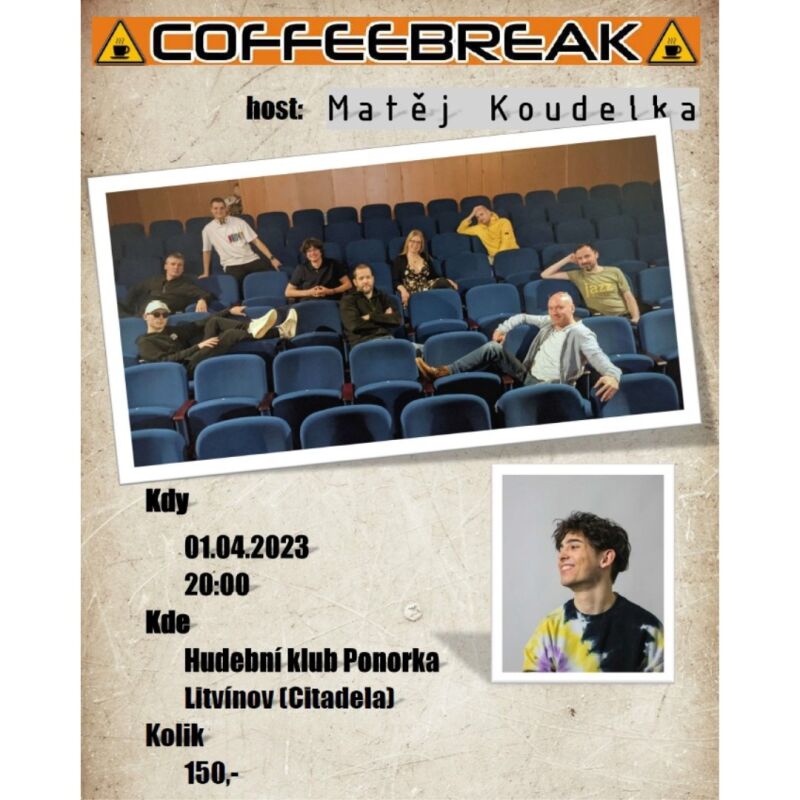 V sobotu 1. dubna vystoupí v Hudebním klubu Ponorka – Litvínov takřka domácí funk-pop-jazzová kapela Coffeebreak a jejich host „výborný kytarista, zpěvák, textař, performer… prostě skvělej muzikant“ Matěj Koudelka. Nenechte si ujít koncert plný energie a příjemných a melodií. A přijďte si užít sobotní večer právě do litvínovské Ponorky.
