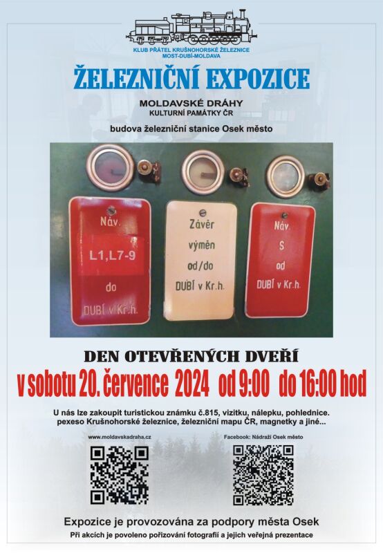 Den otevřených dveří v železniční expozici Od ink - 15.7.2024 0 766 Nádraží Osek (železniční expozice) připravilo na 20. 7. 2024 den otevřených dveří. Přijďte od do 9:00 do 16:00 hod.
