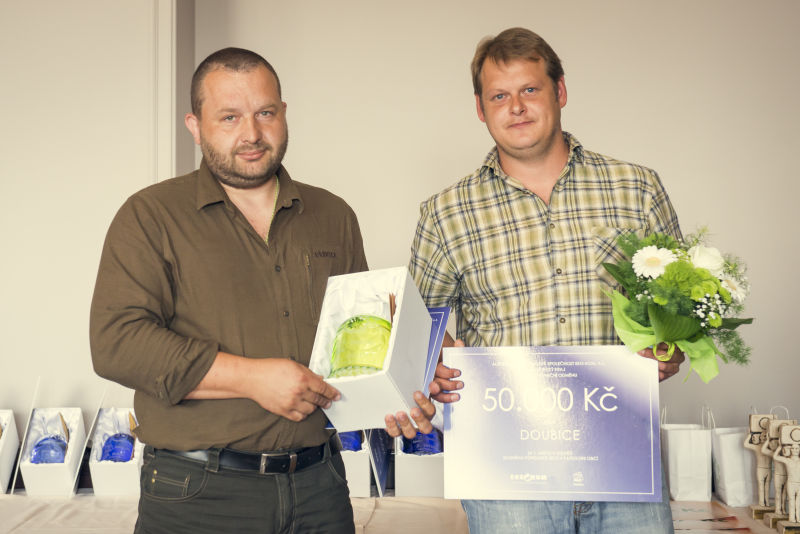 Na fotografii: 1. místo v kategorii obcí – obec Doubice – Ing. Jan Drozd, starosta; Břetislav Jemelka, místostarosta
