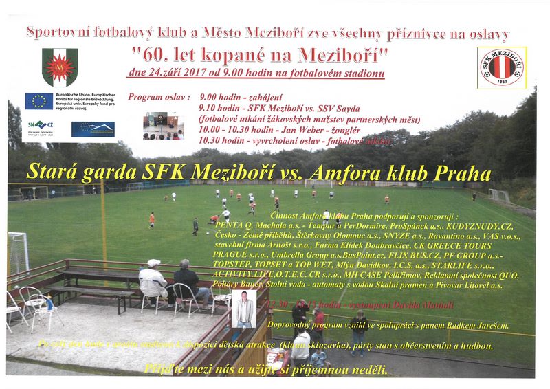 Fotbalový klub byl v Meziboří založen v roce 1957. Tehdy se rušila obec Záluží a do Meziboří se přistěhovala první silnější skupina fotbalistů. „U zrodu fotbalového klubu tenkrát stáli Jaroslav Pečený, Honza Vávra a Jindřich Vopalecký. V prvních letech existence klubu hráli fotbalisté na hřišti, ze kterého je v současné době atletický stadión. V roce 1990 jsme se odstěhovali na nové hřiště, které využíváme dodnes a opustili jsme TJ Baník Meziboří. Fotbalový klub Meziboří se osamostatnil,“ ohlíží se do historie klubu předseda Miroslav Dienelt. Hřiště na Markově kopci se během třiceti let změnilo. Letos investoval klub 700 tisíc korun do rekonstrukce odvodnění travnaté plochy. „V nejbližší budoucnosti bychom rádi rekonstruovali travnatou plochu a oplocení, což je ale investice v řádech miliónů korun. Jako zázemí klubu a šatny využíváme objekt, který nám za jednu korunu pronajímá město Meziboří,“ doplnil Miroslav Dienelt. S finančními prostředky je mezibořský fotbal tak trochu na štíru. Hlavně proto, že členské příspěvky pro děti, kterých je v klubu nejvíc, jsou stále velmi nízké. „Snažíme se udržet členské příspěvky na nejnižší možné částce tak, aby u nás mohly sportovat všechny děti, které chtějí. I ty ze sociálně slabších rodin, které si nemohou dovolit platit svým dětem drahý sport. Důležité pro nás je, aby měly děti fotbal rády a hra je těšila. To by samozřejmě nebylo možné bez nasazení a ochoty funkcionářů a trenérů věnovat čas tomuto sportu bez nároku na odměnu a také bez velké podpory města Meziboří, na kterou se už řadu let můžeme spolehnout,“ vysvětlil předseda. Mezibořský fotbal má v historii i několik významných úspěchů. Dospělí hráči hráli krajský přebor a v roce 2002 vyhráli Severočeský pohár. „Pokud bych měl jmenovitě někoho vyzdvihnout, pak Milana Čermáka, který v 70. letech hrál za reprezentaci, Petra Čermáka, který se z Meziboří dostal do Slavie. Dalším reprezentantem, který vzešel z Meziboří, je Petr Johana. Zapomenout nemohu ani na Jiřího Jediňáka, který hrál za Baník Most. V současnosti se ale soustředíme především na mládež. V klubu je registrováno 130 lidí, z toho 90 dětí. Jezdí k nám trénovat i děti z jiných měst. Máme nejširší mládežnickou základnu v celém okrese,“ pochlubil se Miroslav Dienelt. Šedesátiny oslaví FK Meziboří za podpory města a Euroregionu Krušnohoří 24. září. Oslavy startují devět hodin přátelským zápasem mezi mládeží Meziboří a Saydy. V 10.30 nastoupí mezibořská stará garda proti Amfoře. Během dne se představí například Jan Weber, mistr světa a Evropy ve footbagovém vystoupení s hakisakem nebo zpěvák David Mattioli. Po celý den budou na hřišti dětské atrakce, hudba a občerstvení. „Rádi bychom pozvali všechny bývalé hráče a funkcionáře klubu. Připravujeme pro ně malé překvapení, proto je prosíme, ať se ozvou na tel. č. 604 341 019 nebo 777 966 237,“ uzavřel Miroslav Dienelt.
