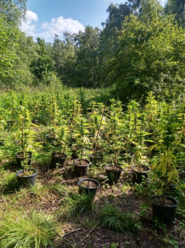 Na konopí rostoucí volně v lese upozornil policisty náhodný houbař. Ti poté na místě objevili většinu rostlin zasazených v kbelících, menší počet rostl přímo ze zeminy. Poblíž políčka se nacházel příbytek vytvořený z kmenů stromů a plachet, ve kterém se našly různé předměty, části rostlin, nádobí a nářadí určené k pěstování konopí. Policisté následně ve věci prováděli úkony prověřování ke zjištění osob, které zde marihuanu pěstovaly. Tyto osoby v místě pěstování kriminalisté nakonec přistihli a zadrželi.