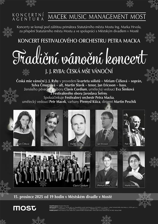 Městské divadlo v Mostě uvede 15. prosince 2025 od 19 hodin Českou mši vánoční J. J. Ryby, a to v provedení kvarteta sólistů – Miriam Čížková – soprán, Sylva Čmugrová – alt, Martin Slavík – tenor, Jan Ericsson – bass, ženského pěveckého sboru Clavis Cordium, umělecká vedoucí Eva Šimková a Festivalového sboru Jaroslava Šefrny.