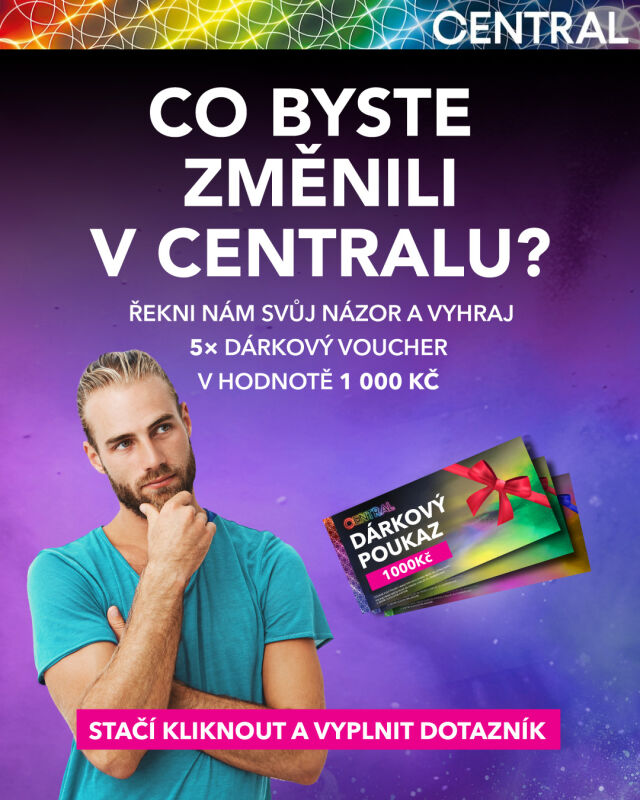 Chybí vám v Centralu konkrétní módní značka? Je něco, co byste v prostorách centra změnili? Nebo máte nápad, jak pomoci zlepšit služby? Každý, kdo vyplní krátký dotazník, bude automaticky zařazen do slosování o: 5× dárkový voucher v hodnotě 1 000 Kč na nákupy v Centralu.