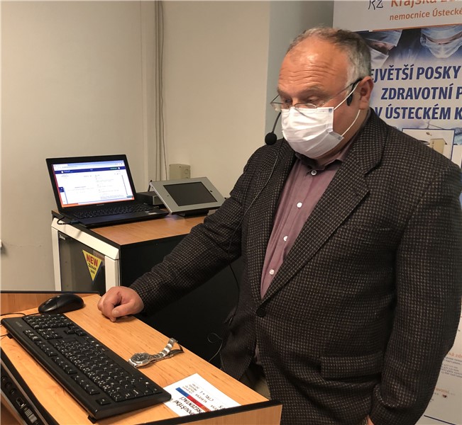 Moderní technologie k výuce studentů využívá také lékař Gastroenterologického oddělení Masarykovy nemocnice v Ústí nad Labem Michal Tichý. „Domnívám se, že ani v současné situaci, která přináší zvýšené nároky na personál nemocnic a současně limituje zažité výukové metody v prostředí vysokých a vyšších odborných škol nelze rezignovat na kvalitní vzdělávání studentů vytvářejících nastupující generaci zdravotnických pracovníků všech profesí. Proto jsem velmi uvítal příležitost využít technických možností, kterými Vzdělávací institut společnosti Krajská zdravotní ve spolupráci s dotčenými školami disponuje. Je to pro mě nová zkušenost a nezvyk přednášet v prázdné učebně s absencí bezprostřední audiovizuální reakce v auditoriu. Jsem velmi potěšen zájmem studentů o tento způsob výuky, který dávají najevo množstvím přihlášených účastníků a celou řadou jimi zaslaných dotazů,“ dodal lékař.