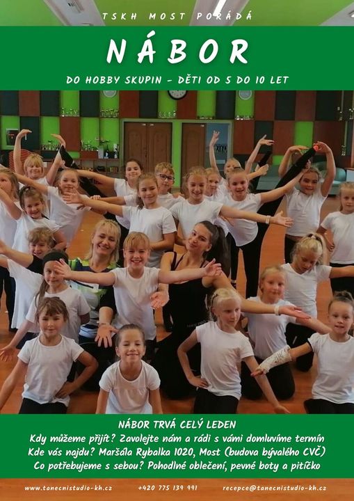 Taneční studio Kamily Hlaváčikové pořádá nábor pro tanečníky a tanečnice od 5 do 10 Let Od redakce HL - 11.1.2022 0 1035 Nový rok, nová příležitost! TSKH – Taneční studio Kamily Hlaváčikové Most pořádá nábor pro děti od 5 do 10 let do nesoutěžních skupin.