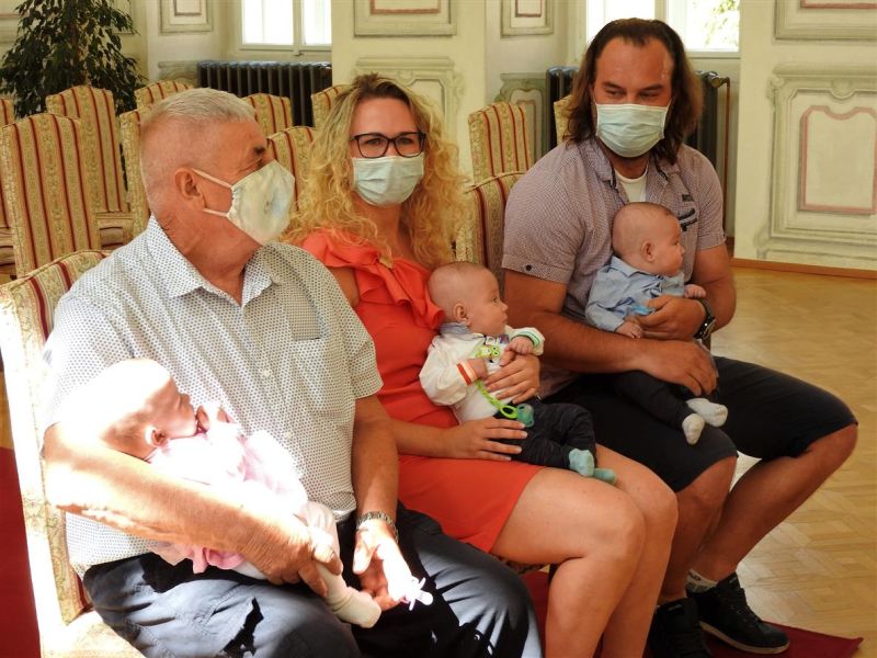 Trojčátka byla slavnostně přivítána