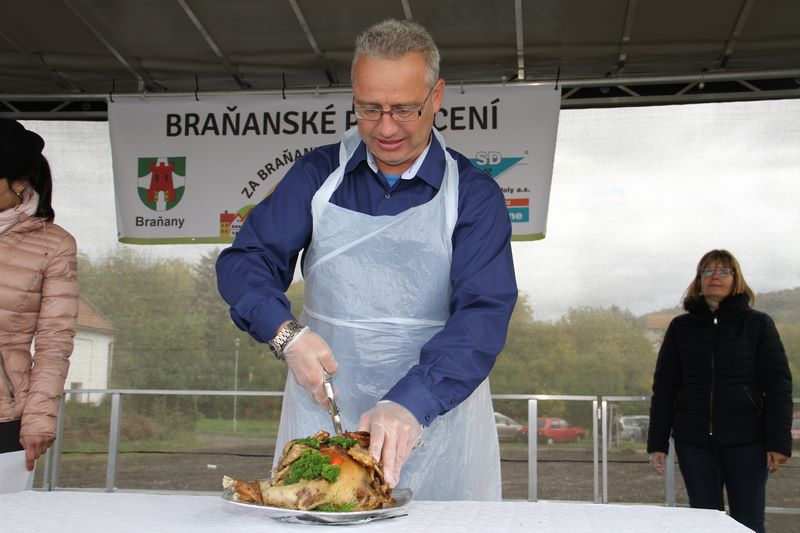 O zábavu se postaral kejklíř, kouzelník a šermíři. Velké ovace sklidilo vystoupení sokolníka, kata a rytířský turnaj pro děti. Samozřejmě nechyběl ani vrchol posvícení – porcování posvícenské husy. Tu spolu se starostou Braňan Petrem Škantou za přihlížení davu diváků porcoval ředitel strategie a komunikace Severočeských dolů Rudolf Kozák.