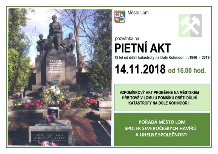 Vzpomínka na oběti důlní katastrofy na dole Kohinoor