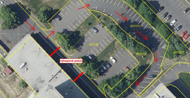 Parkoviště pro návštěvníky je stále k dispozici před budovou B – je potřeba odbočit vpravo do první kóje a objet parkoviště podle mapky. Tím se dostanete do poslední kóje, která je nejblíže vstupu do budovy B. Parkovací kóje nejblíže vstupu do budovy B (od bankomatu či květinářství) slouží výhradně pro pacienty. V případě dopravy imobilního pacienta je možné pacienta i přes značku zákaz vjezdu dovézt před urgentní příjem přes rampu.